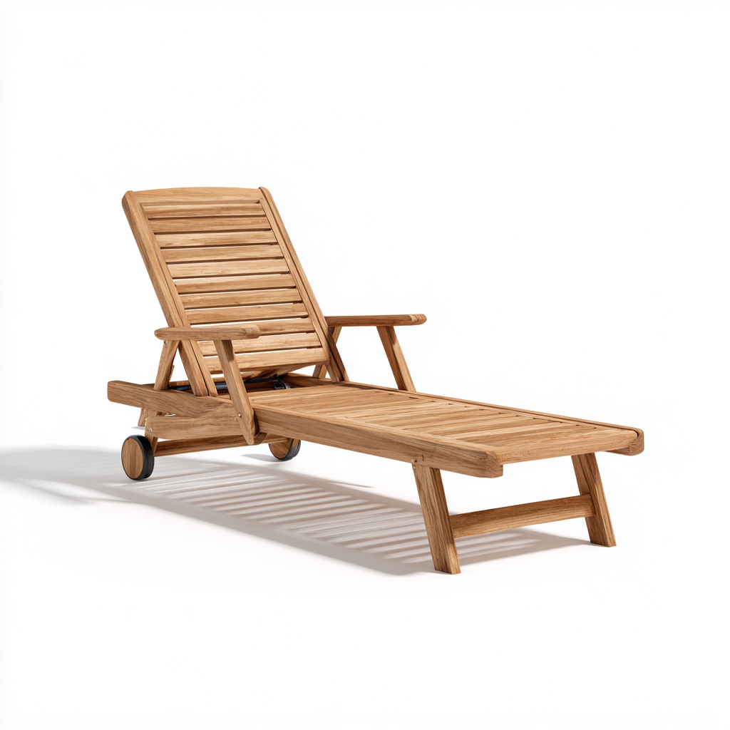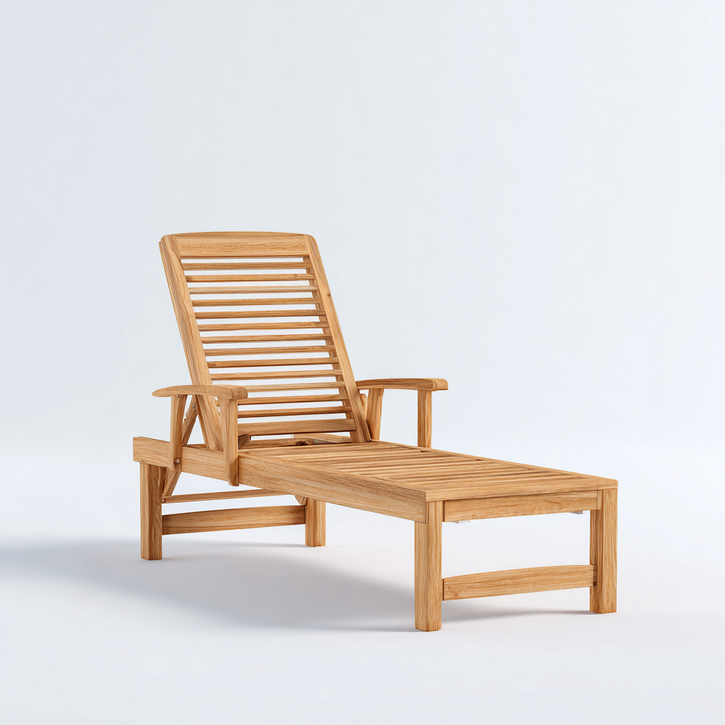 Bain de soleil en bois 190x60x95 cm - bois naturel - dossier réglable