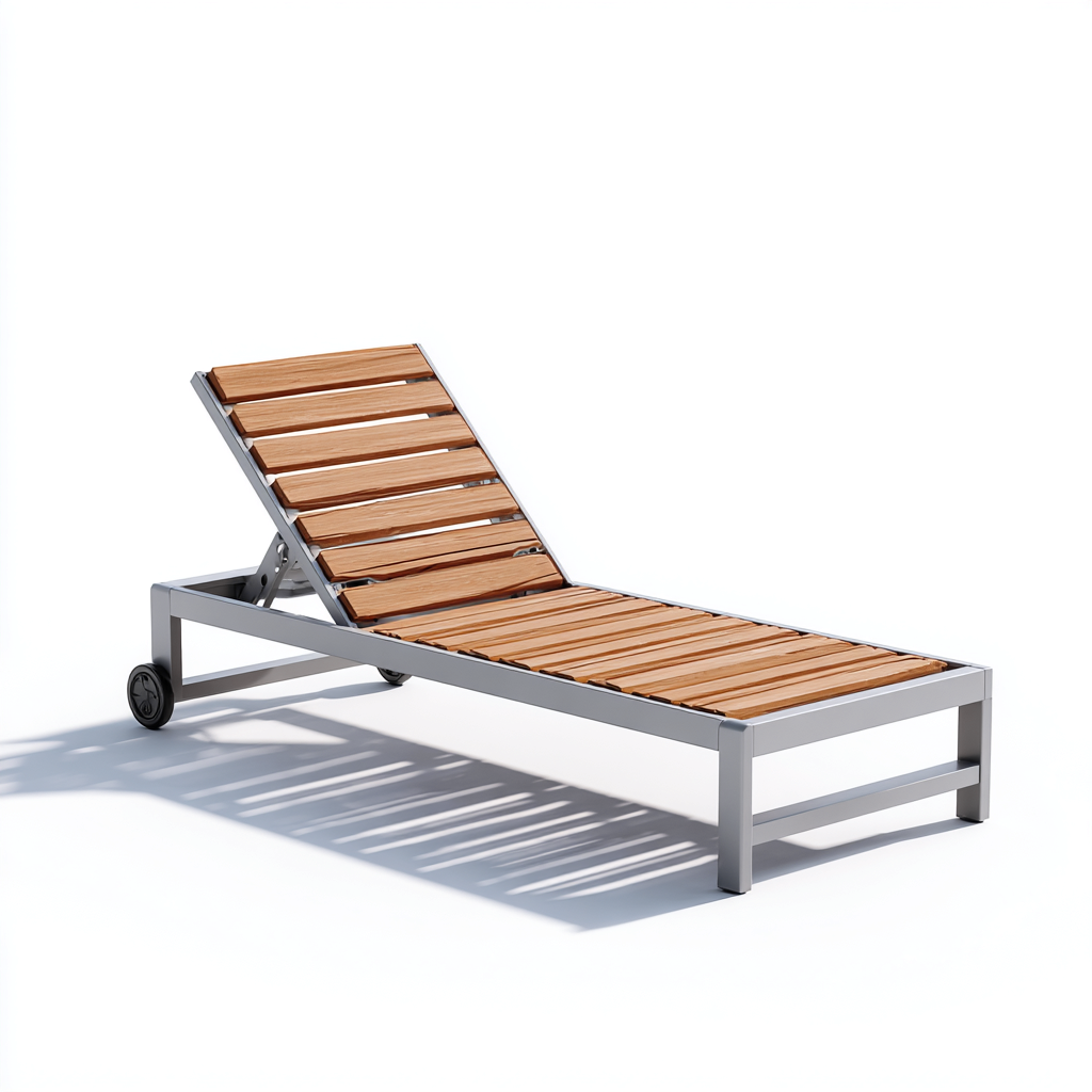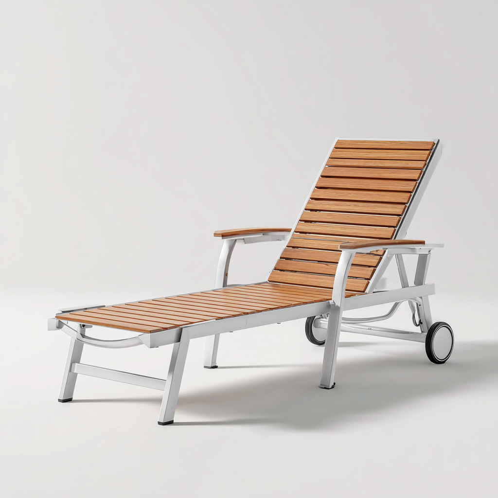 Bain de soleil aluminium et bois 175x60x110 cm - bois naturel - pour jardin