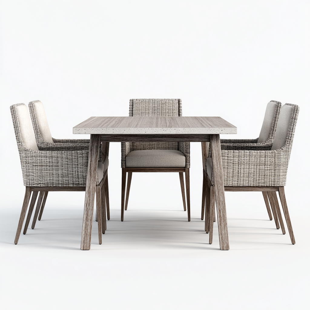 Salle à manger de jardin - rotin synthétique et bois - 160x90x75 cm - gris - style naturel