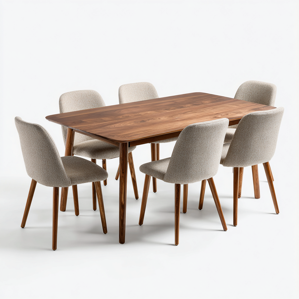 Salle à manger de jardin - bois et tissu - 160x90x75 cm - noyer/beige - style extérieur