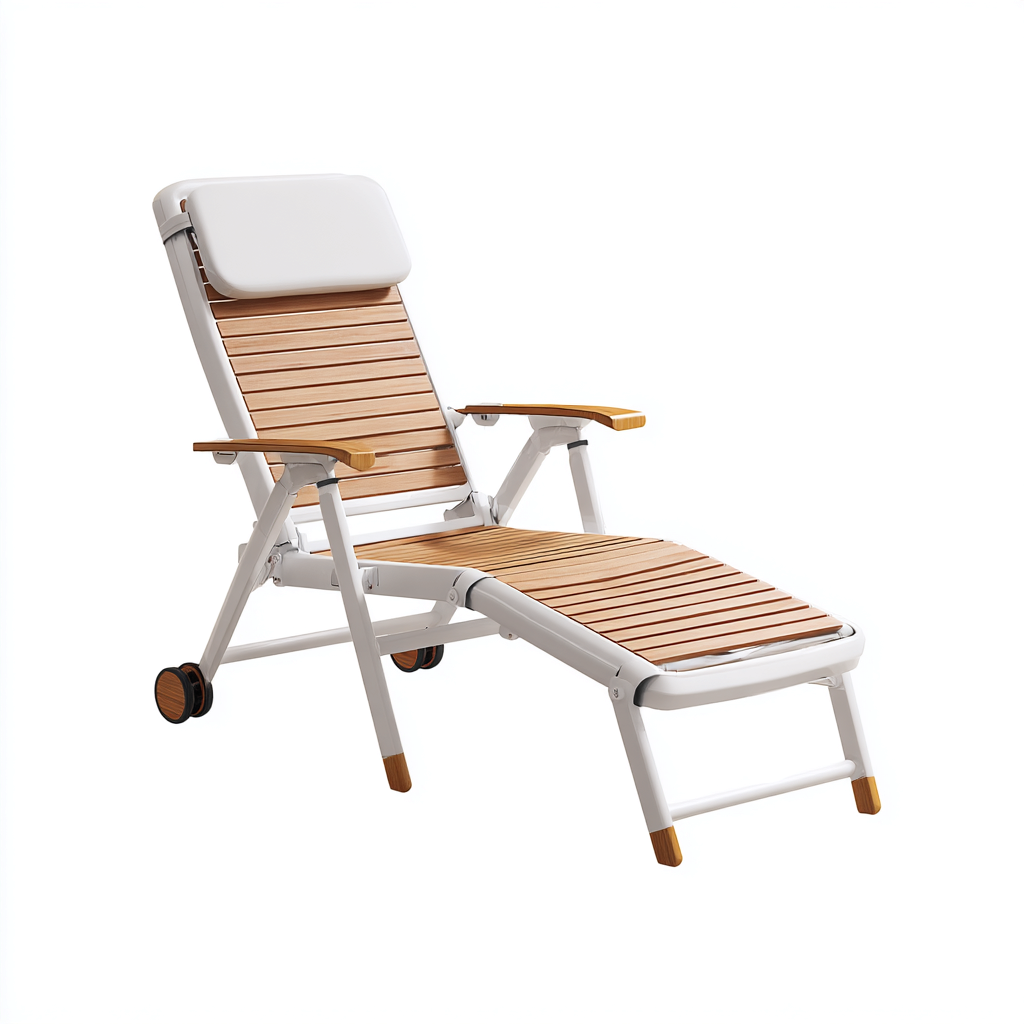 Le bain de soleil est doté d'un dossier réglable, d'accoudoirs pratiques et de roues arrière permettant un déplacement facile.