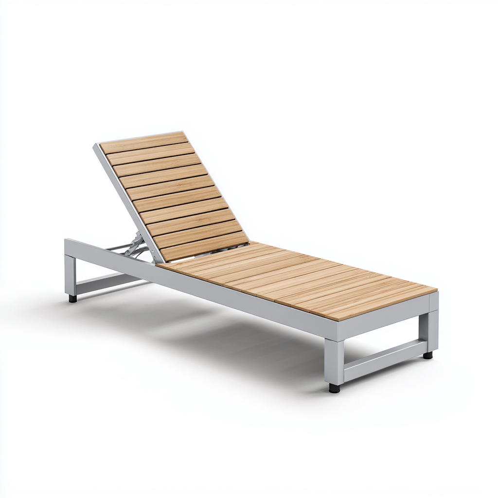 Ce bain de soleil en aluminium et lattes de bois naturel est conçu pour offrir un moment de détente confortable en extérieur. Son design droit et épuré s'intègre facilement dans les jardins, terrasses ou bords de piscine.