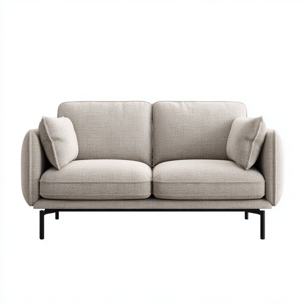 Ce canapé 2 places en tissu gris clair se distingue par son design moderne et ses lignes arrondies. Son assise moelleuse et son dossier rembourré offrent un excellent confort, idéal pour créer un espace de détente élégant dans le salon.