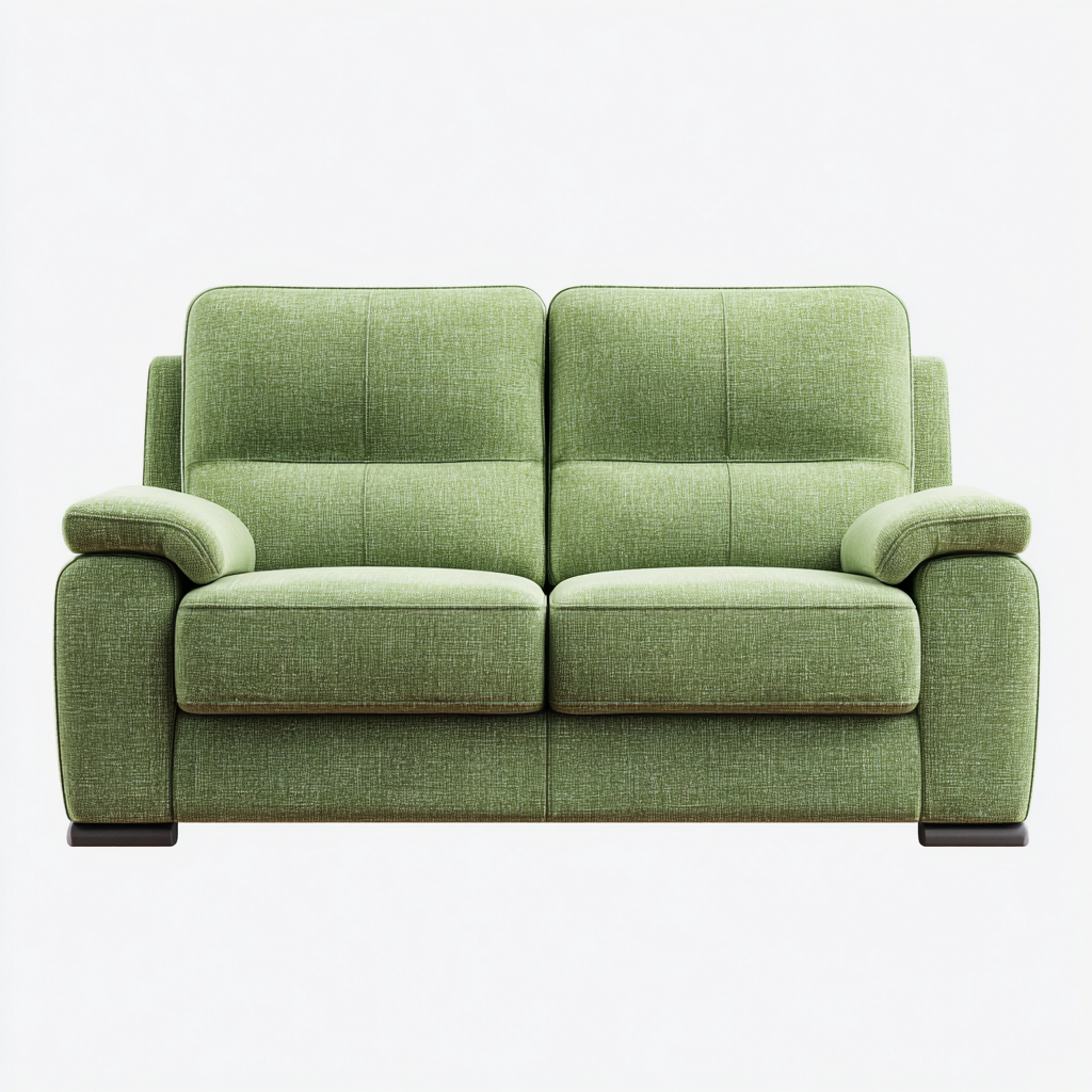 Le canapé est fabriqué en tissu vert résistant, agréable au toucher, avec une structure interne conçue pour offrir durabilité et confort. La finition soignée lui permet de s'intégrer facilement dans différents styles d'intérieur.