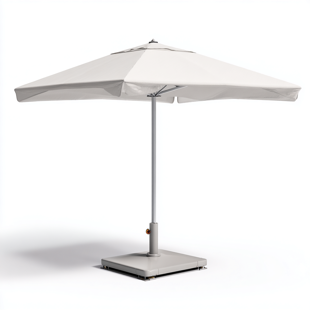 Ce parasol droit en aluminium avec toile blanche offre une couverture ombragée large et élégante pour les espaces extérieurs. Sa structure centrale assure une protection efficace contre le soleil, idéale pour le jardin ou la terrasse.