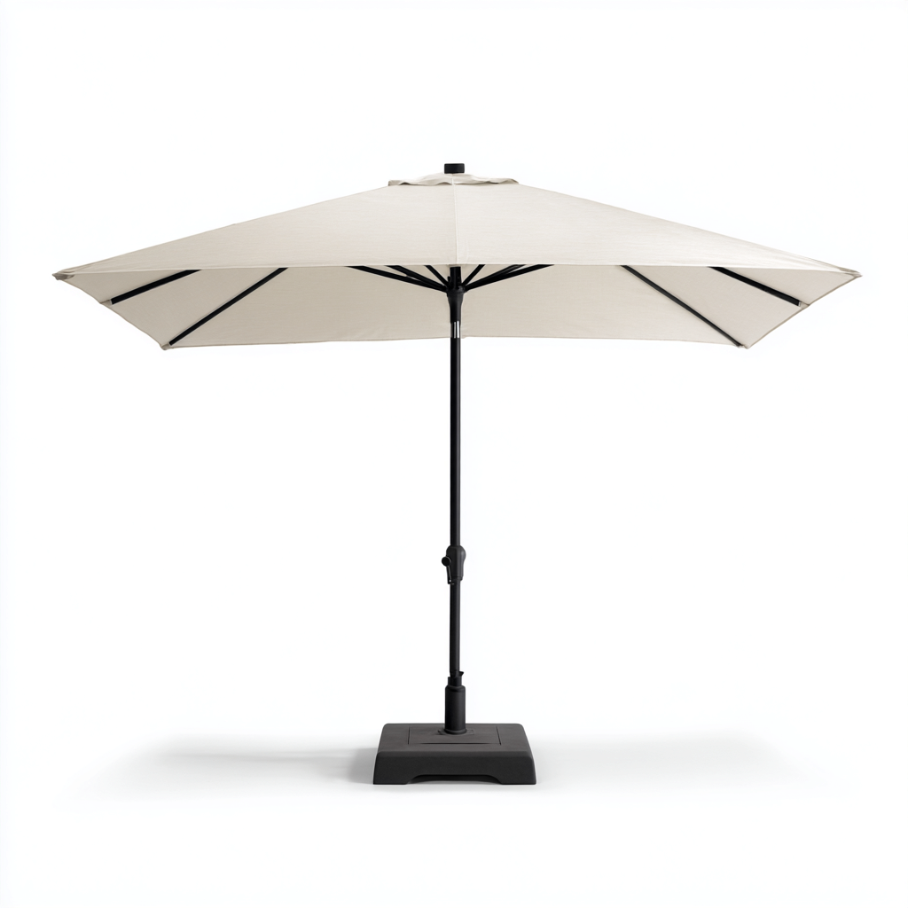 Ce parasol utilise un système d'ouverture et de fermeture simple ainsi qu'une base stable, assurant un maintien fiable. Sa forme carrée offre une protection solaire uniforme, en faisant un choix idéal pour les espaces de détente.