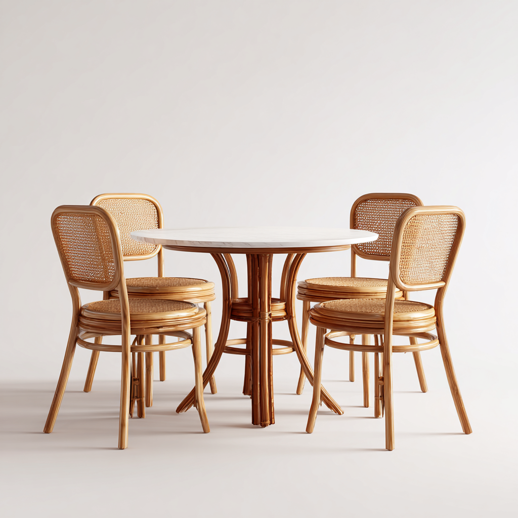 L'ensemble se distingue par sa légèreté, sa stabilité et sa durabilité. Son style bohème naturel s'intègre facilement dans tout environnement extérieur. La conception confortable des chaises permet une utilisation agréable lors des repas et moments de détente.