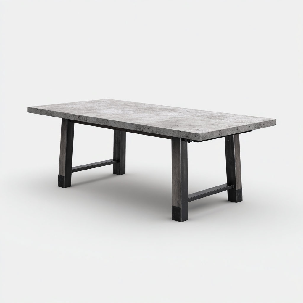Cette table à manger rectangulaire est conçue avec un plateau en composite gris associé à une structure en métal, offrant une solution solide et adaptée à un usage quotidien.
